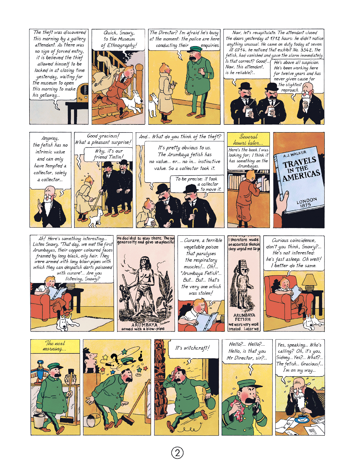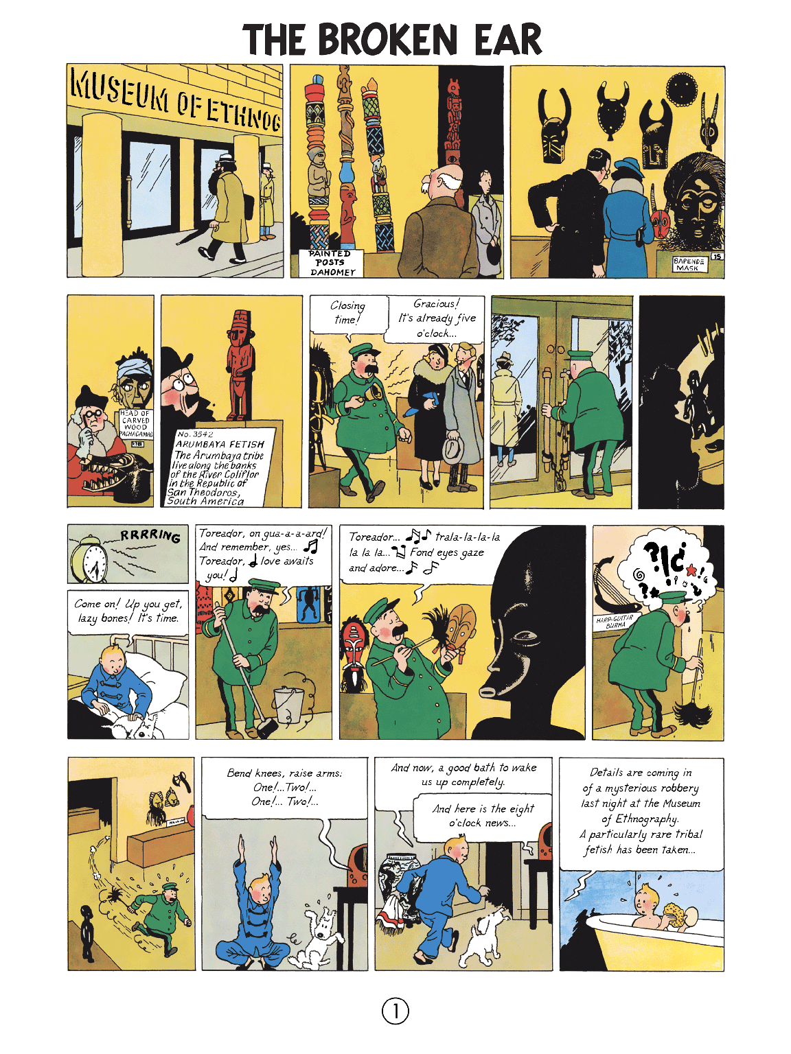 The Broken Ear (1937) is the story of a thrilling pursuit. Tintin sets off to South America to retrieve a stolen fetish. There, all sorts of interests are in conflict: military, economic and the war of the Gran Chaco which had been opposing Bolivia and Paraguay for the past three years. A small Arumbaya statue has been stolen in a museum, then returned. One little detail though will tell Tintin that instead of the original, a mere replica was returned. There must be a secret hiding behind this small statue since its robbery was carefully concealed. This is in South America that Tintin will find the key to this enigma.